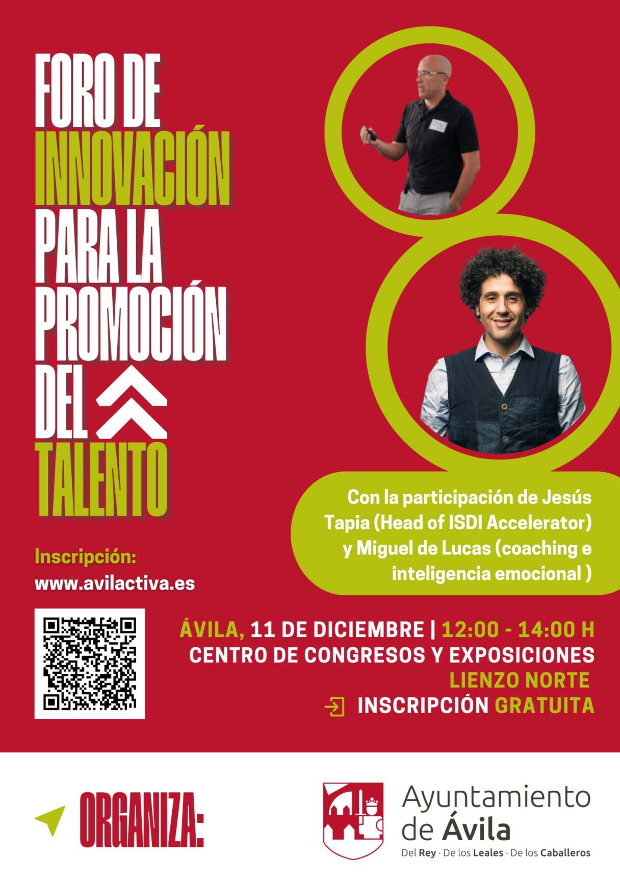 Bajo esta premisa, el Ayuntamiento de Ávila va a reunir a dos ponentes bajo la misma conferencia para motivar e impulsar la innovación entre un público amplio de la ciudad de Ávila: empresario, profesionales por cuenta propia y ajena, estudiantes y ciudadanos en general. Los ponentes que van a participar son: